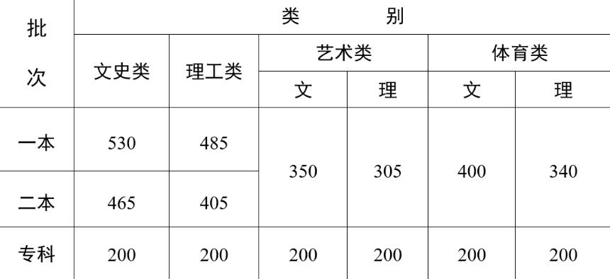 本科錄取控制分?jǐn)?shù)線405分
