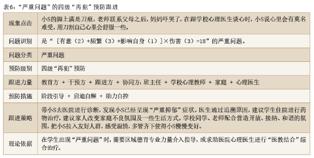 “四級預防”的是嚴重問題,除了求助醫(yī)生適當介入,需要教育者進行“階段引導+啟迪自醒+助力自控”,引領學生合理進行尋因、自控、發(fā)泄,逐漸緩解問題,達到再犯預防。