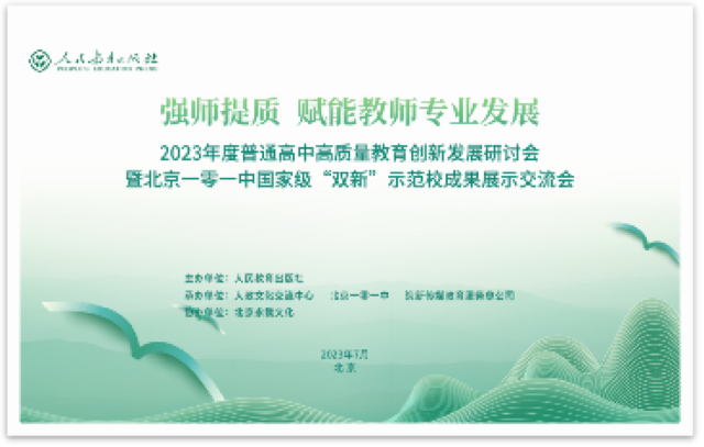 中國(guó)教育新聞網(wǎng)訊(記者 焦小新)為引領(lǐng)高中學(xué)校課程改革創(chuàng)新,推動(dòng)校本教研與課堂教學(xué)創(chuàng)新探索,賦能高中教師專(zhuān)業(yè)發(fā)展,近日,由人民教育出版社主辦的“2023年度普通高中高質(zhì)量教育創(chuàng)新發(fā)展研討會(huì)暨北京一零一中國(guó)家級(jí)‘雙新’示范校成果展示交流會(huì)”成功舉辦。