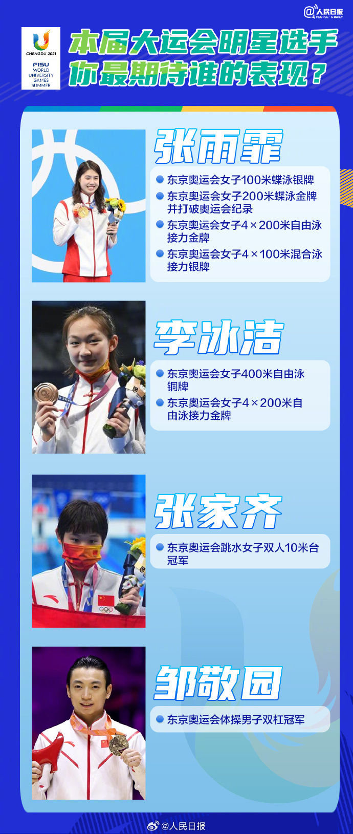 【成都大運(yùn)會(huì)收看指南】第31屆世界大學(xué)生夏季運(yùn)動(dòng)會(huì)將于7月28日—8月8日在四川成都舉辦。“蓉寶”“蓉火”“蓉光”,傻傻分不清?可愛的熊貓圖標(biāo),認(rèn)得出是哪個(gè)項(xiàng)目嗎?此外,這些體壇名將曾參加過大運(yùn)會(huì)!還有2周開幕,期待!