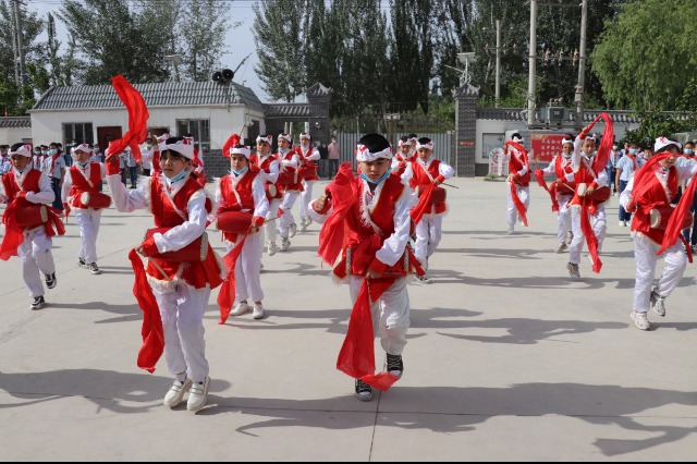 新疆烏什縣依麻木鎮(zhèn)國家通用語言小學將國家通用語言文字教育融入文體活動中。梁俊杰 供圖