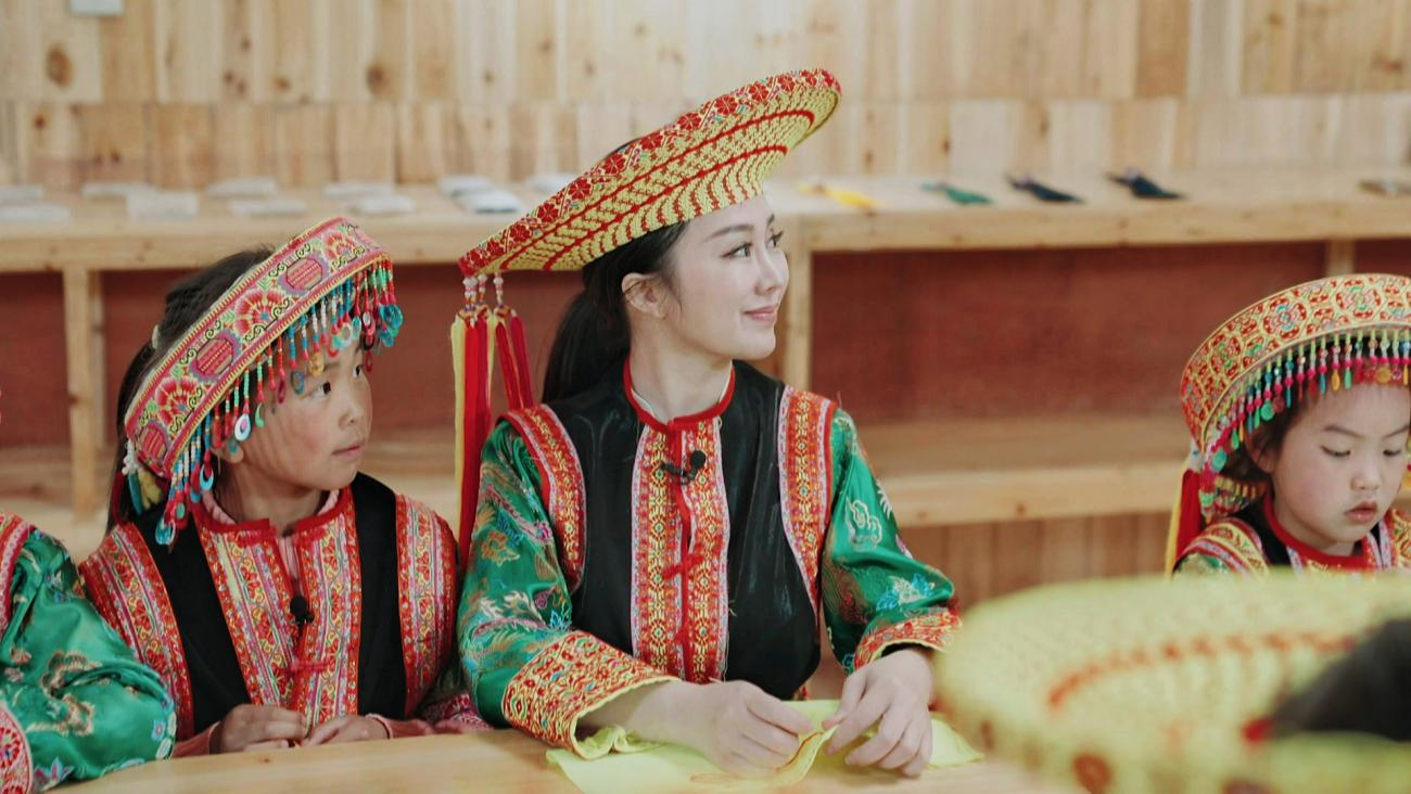 圖為郭曉芳老師與學(xué)生一起學(xué)習(xí)國家級非物質(zhì)文化遺產(chǎn)——花瑤挑花