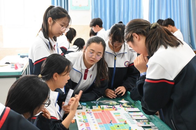 學生們在“小老師”的帶領下玩“化學元素周期表”桌游 學校供圖