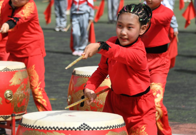 鄉(xiāng)村小學(xué)將鼓文化融入校本課程 新華社 任 超 攝