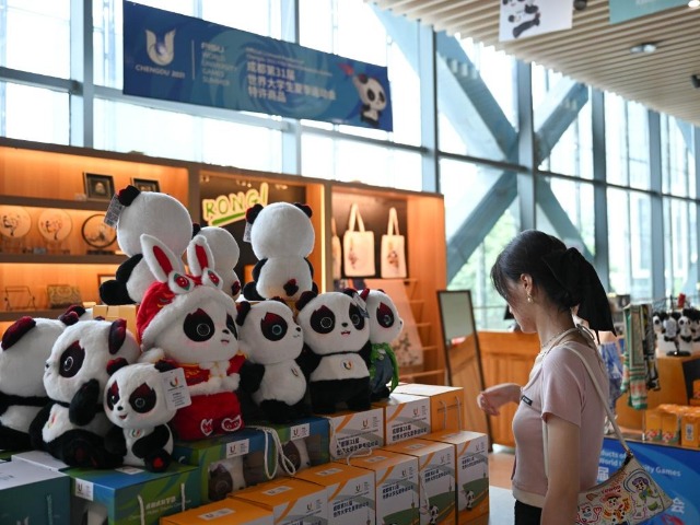 7月18日,市民在成都大運會成都博物館官方特許商品零售店內(nèi)選購“蓉寶”公仔。