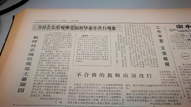那一年正好有畢業(yè)實(shí)習(xí),實(shí)習(xí)過程中耳聞目睹的一些事,讓我不由得對師范畢業(yè)生是否都適合當(dāng)老師陷入了沉思。的確,多數(shù)同學(xué)在實(shí)習(xí)過程中展示了自己的實(shí)力,得到了實(shí)習(xí)學(xué)校師生和學(xué)生家長的認(rèn)可。我和另一位年長的余同學(xué)一起在華東師大二附中實(shí)習(xí)語文教學(xué),采用了啟發(fā)式教學(xué)的方式,多數(shù)同學(xué)和家長都算認(rèn)可,也有一些家長敏銳感受到了孩子學(xué)習(xí)和作業(yè)情況的變化找到學(xué)校了解情況。但我也聽到不少在其他學(xué)校實(shí)習(xí)發(fā)生的事情,諸如學(xué)校管理混亂、學(xué)生厭學(xué)、家長對學(xué)生情況不聞不問、學(xué)校管理層和個別教師敷衍塞責(zé)等,一些在這類學(xué)校實(shí)習(xí)的同學(xué)難以正常開展教學(xué)。我們在一些學(xué)校發(fā)現(xiàn),個別學(xué)校一到下午整個教學(xué)活動都會停擺,學(xué)生沒人管,實(shí)習(xí)老師沒事干;還了解到個別實(shí)習(xí)老師不具備基本的教學(xué)能力,有的嚴(yán)重口吃,有的寫不好一個教案,一堂課上20分鐘就卡殼了,師生都很尷尬。還有一些實(shí)習(xí)的學(xué)生課上敷衍了事,課下到處活動,為畢業(yè)分配找關(guān)系,在實(shí)習(xí)學(xué)校和同學(xué)中間影響很不好。針對這些現(xiàn)象,我有感而發(fā),連夜寫了一稿,反映了這些實(shí)際問題,并提出一些人雖然學(xué)的是師范,但難以在未來勝任教師職責(zé),并不適合當(dāng)老師。《中國教育報(bào)》很快以《不合格的教師應(yīng)該改行》為題,發(fā)表了我的這篇來稿。