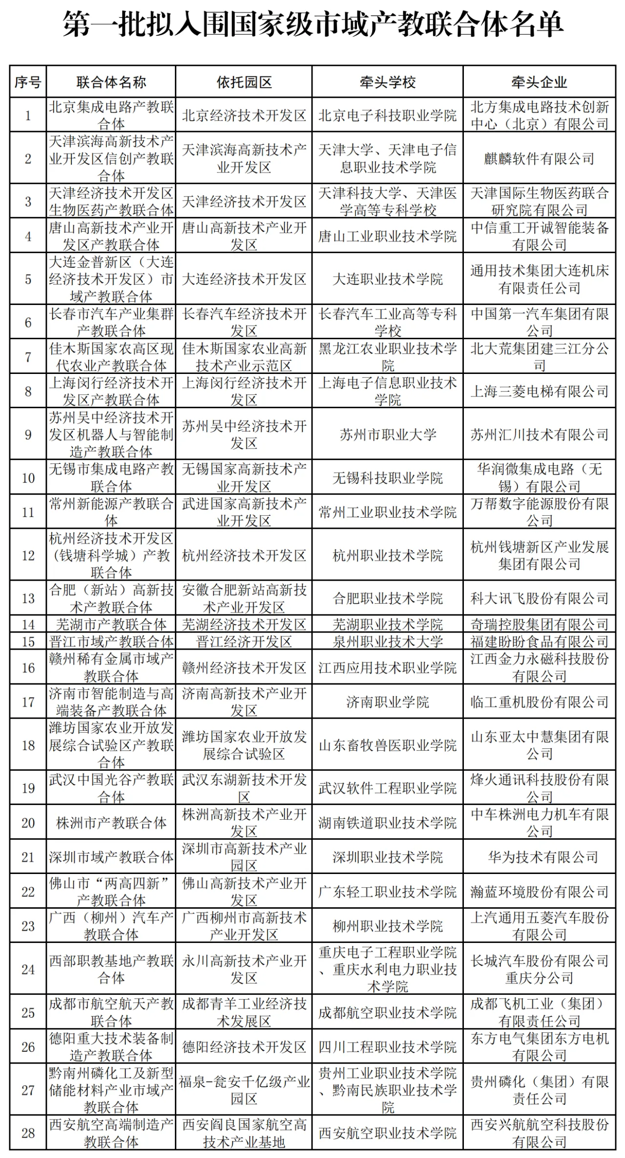 中國教育報-中國教育新聞網(wǎng)訊(記者 歐媚)記者近日從教育部獲悉,第一批擬入圍國家級市域產(chǎn)教聯(lián)合體名單公布,一共28家入圍。