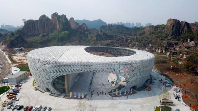 現(xiàn)代建筑和自然環(huán)境有機融合的背后,是廢棄礦山經(jīng)過建設(shè)開發(fā),華麗變身“巖壁芭蕾”國際賽場的綠色轉(zhuǎn)型故事。