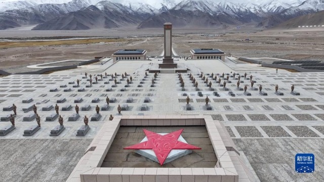 駐守西陲的新疆軍區(qū)某團官兵來到康西瓦烈士陵園祭奠英烈(視頻截圖,2023年9月25日攝)。新華社記者 白志強 攝