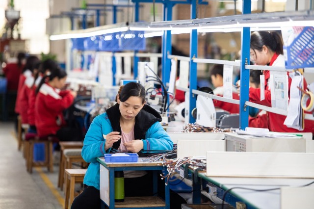 在湖南省汨羅市神鼎山鎮(zhèn)豐倉村的“巾幗車間”,工人在生產(chǎn)數(shù)據(jù)線(2023年3月7日攝)。新華社記者陳思汗 攝