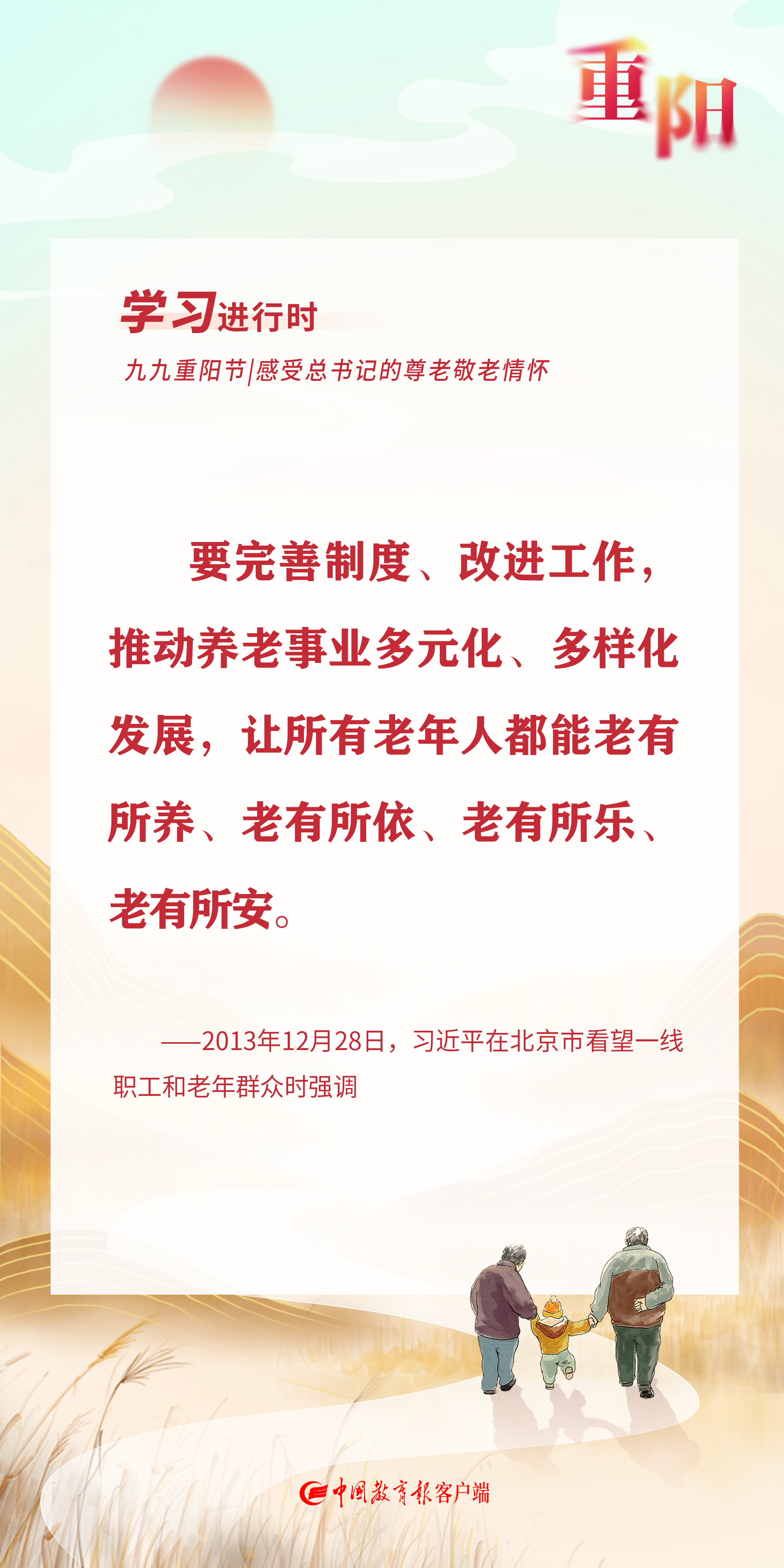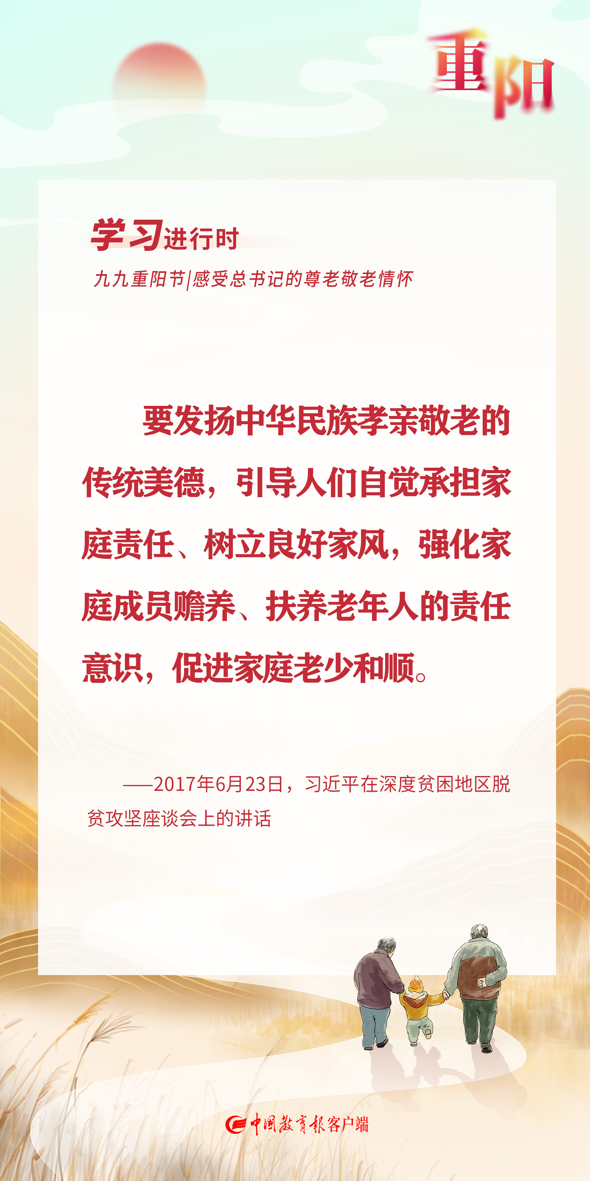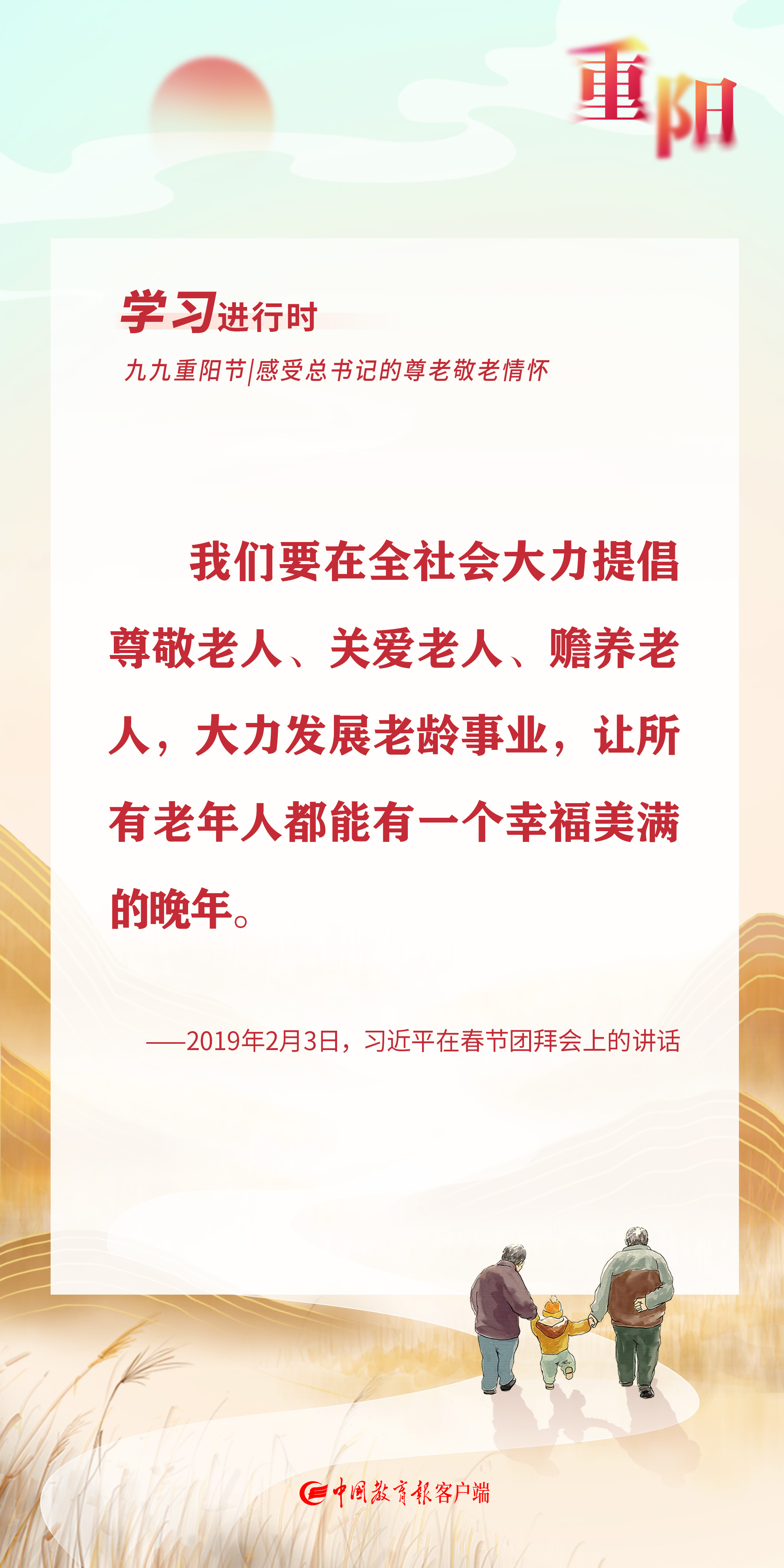 習近平總書記歷來十分關(guān)心老年人,重視老齡工作,在多個場合作出重要論述,親身踐行尊老愛老優(yōu)良傳統(tǒng),引領(lǐng)全社會形成良好風尚。今天是重陽節(jié),讓我們一起重溫習近平總書記的暖心話語,祝福天下老年人健康長壽。