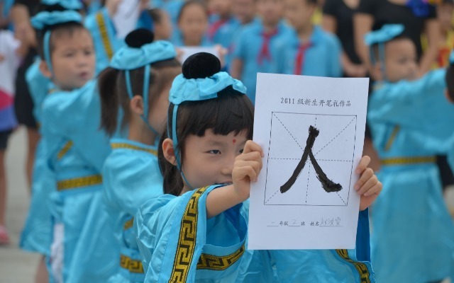 新生開筆禮書寫“人”字