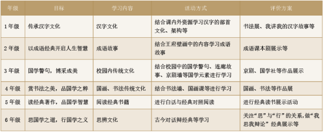 表1:國(guó)學(xué)課程目標(biāo)與活動(dòng)實(shí)施