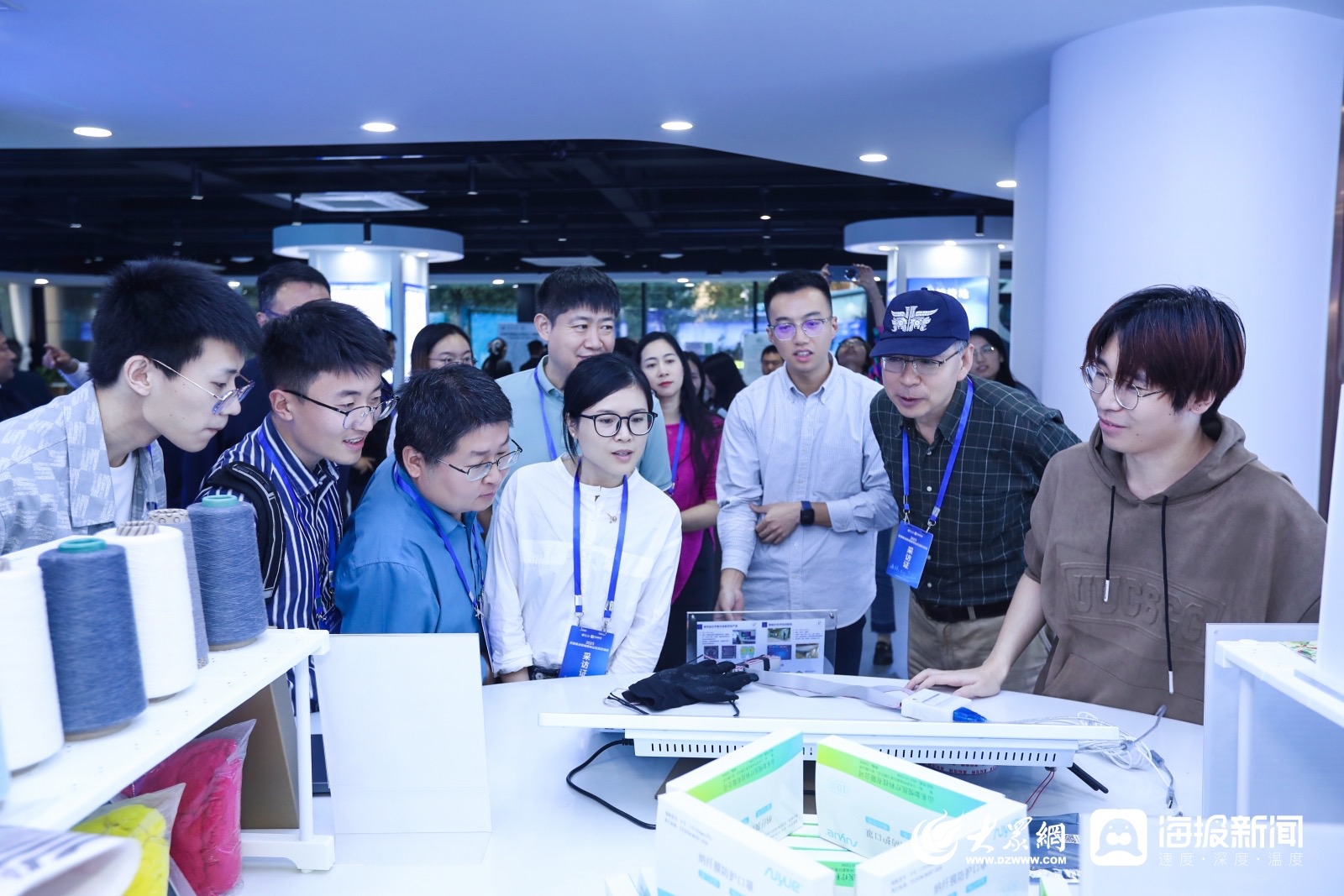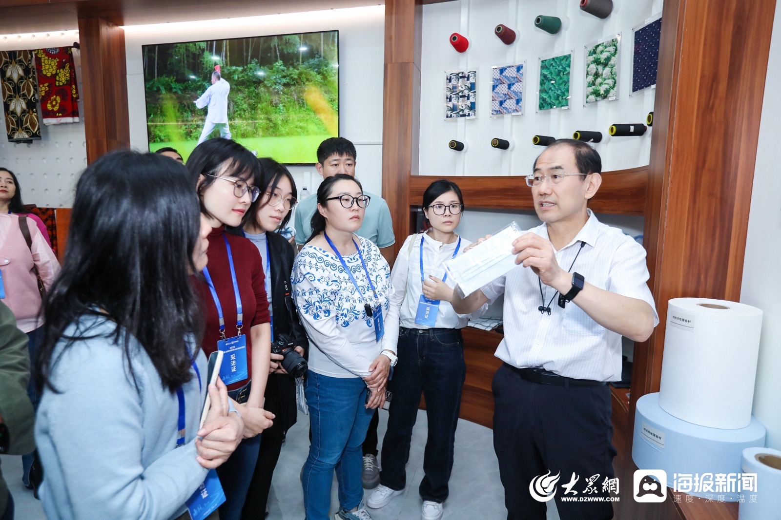 記者們參觀生態(tài)紡織省部共建協(xié)同創(chuàng)新中心