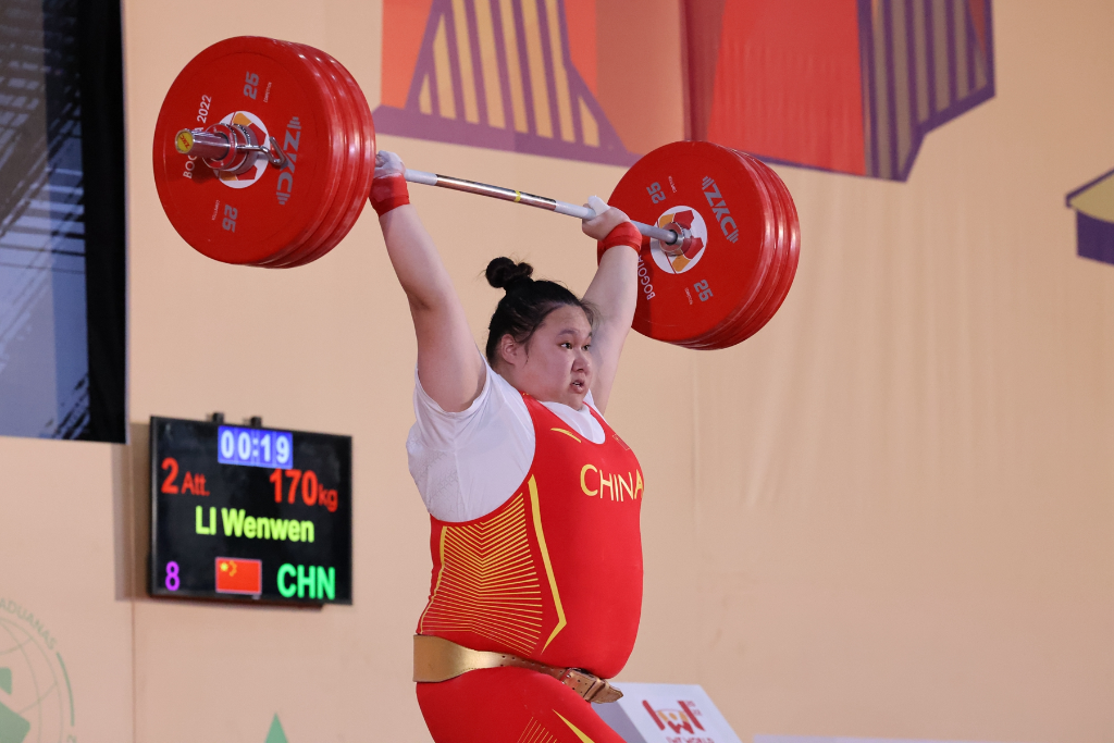 李雯雯在2022世界舉重錦標(biāo)賽女子87公斤以上級(jí)比賽中