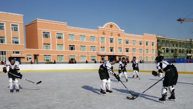 中國教育報-中國教育新聞網(wǎng)訊(通訊員 楊長江)冰城冬日,寒風(fēng)凜冽。在黑龍江省哈爾濱市木蘭縣初級中學(xué)校的操場上,十幾名少年在冰場上飛馳,冰球在他們的球桿下婉若游龍。這是該校在上體育課,另一組準(zhǔn)備上課的孩子已經(jīng)有組織地在教學(xué)樓的走廊里練起了基本動作。