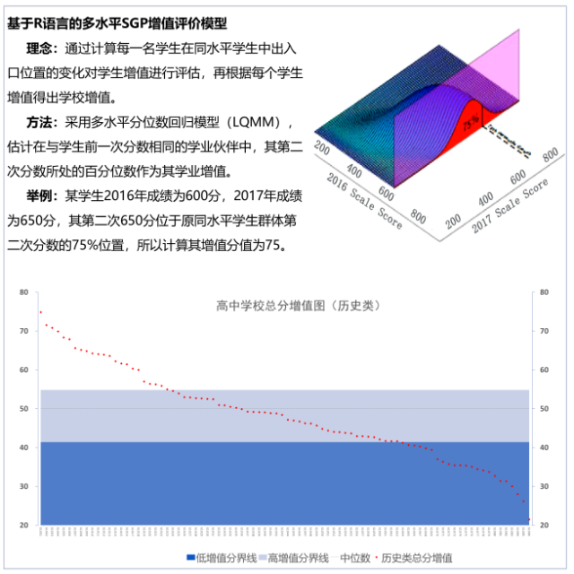 迭代評價(jià)模型。長沙市遵循增值評價(jià)、過程評價(jià)等理念,先后探索并運(yùn)用了K均值聚類、多元回歸、多層線性、多水平SGP等增值評價(jià)模型,精準(zhǔn)量化學(xué)生學(xué)業(yè)成長、教師教學(xué)效能、學(xué)校發(fā)展增量,追蹤學(xué)校從起始年級到畢業(yè)年級學(xué)業(yè)質(zhì)量的增值變化,突出考查學(xué)校教師對學(xué)生學(xué)業(yè)進(jìn)步和能力提升影響的凈效應(yīng)(見圖2)。以進(jìn)步幅度衡量學(xué)校辦學(xué)質(zhì)量的增值評價(jià)方式,切實(shí)解決因起點(diǎn)不同帶來評價(jià)不公的難題,打破了單一、靜態(tài)的終結(jié)性評價(jià)困局。