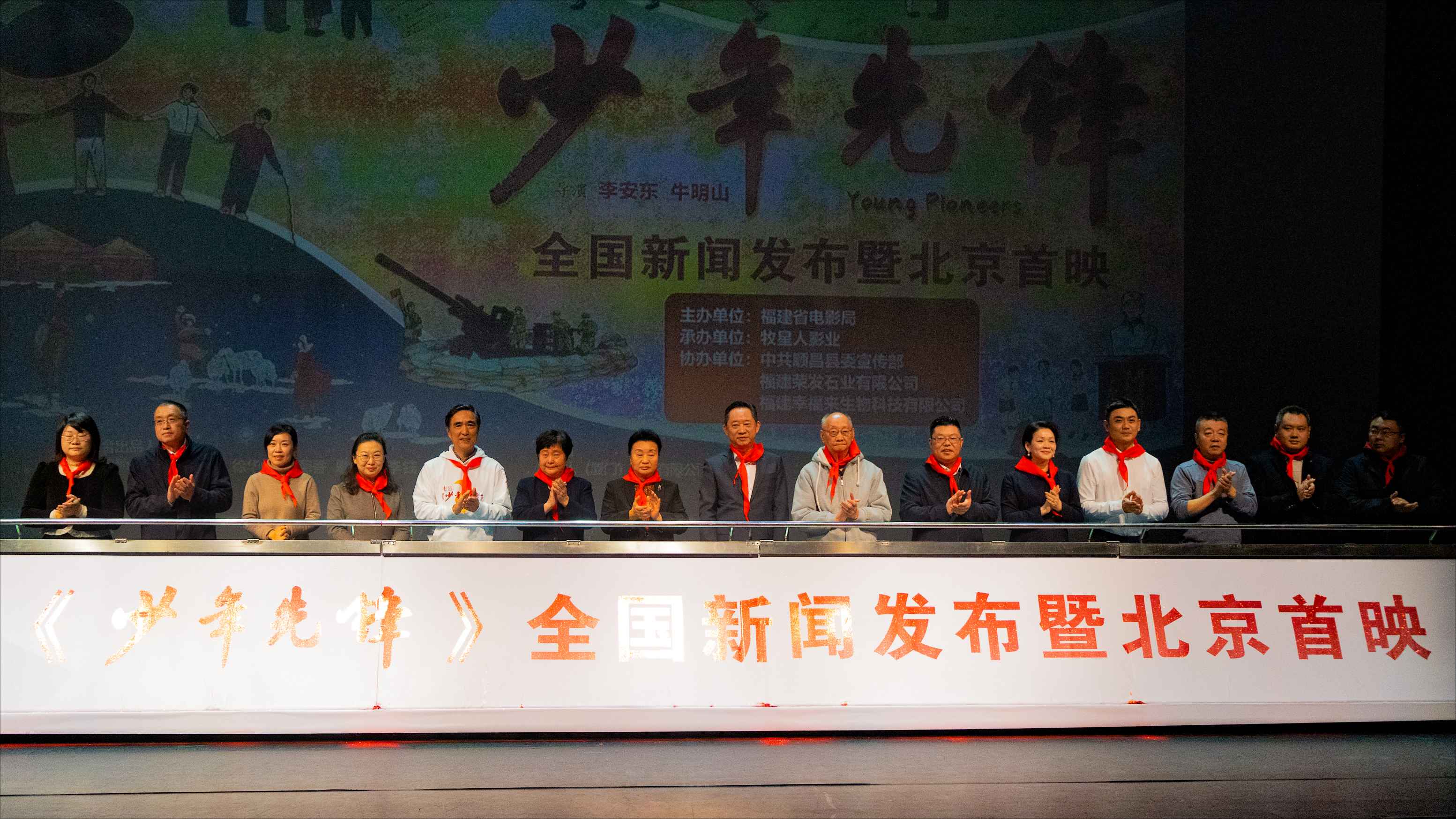 來自福建、江西、江蘇、山東、陜西、內(nèi)蒙古等地參與電影《少年先鋒》拍攝的嘉賓代表以及軍隊(duì)老將軍和黨史軍史專家,與首都56所中小學(xué)師生400余人參加首映式。電影中的少年英雄原型——草原英雄小姐妹龍梅和玉榮,以及“少共國際師”紅軍后人的代表,受邀來到活動(dòng)現(xiàn)場,共同緬懷紅色歲月。