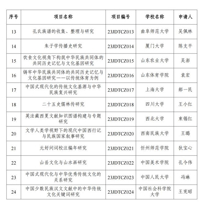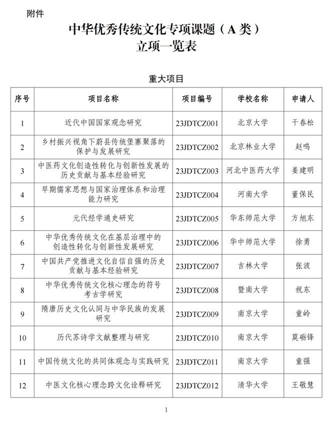 日前,教育部公布中華優(yōu)秀傳統(tǒng)文化專項(xiàng)課題(A類)立項(xiàng)結(jié)果,共計(jì)立項(xiàng)122項(xiàng),其中重大項(xiàng)目24項(xiàng);重點(diǎn)項(xiàng)目98項(xiàng)。和教育小微一起來看名單——