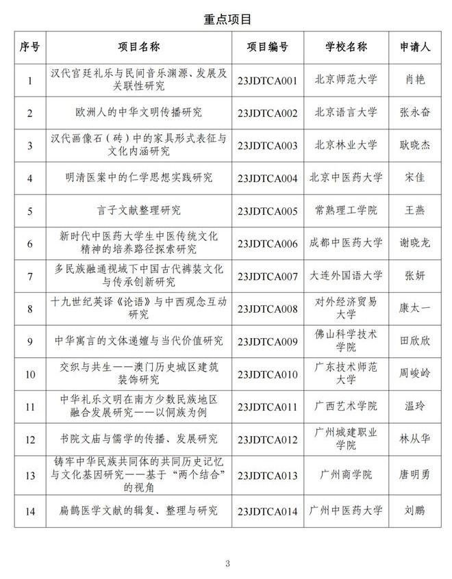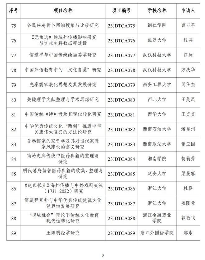 中華優(yōu)秀傳統(tǒng)文化專項(xiàng)課題(A類)立項(xiàng)一覽表