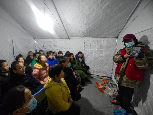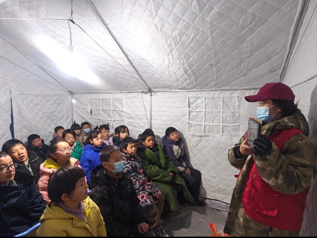 這樣的臨時“帳篷學校”積石山縣共有145個。臨夏州教育局為迅速恢復災后教育教學秩序,保障每一個受災學生有書讀、有學上,在全縣145個安置點開設臨時“帳篷學?!保杏媱?、有秩序地開展教育教學工作和形式多樣的教育活動,倡議州、縣市教育局、州直各學校根據(jù)自身實際,自愿向積石山縣派駐支教援助團。
