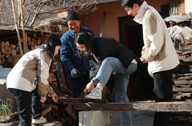 支教大學(xué)生開(kāi)展主題教育實(shí)踐活動(dòng)期間,與村民劉志才進(jìn)行交流。