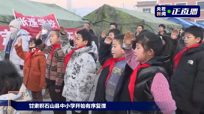 12月25日,甘肅省積石山縣中小學(xué)有序復(fù)課,積石山縣152個(gè)帳篷小學(xué)全部開(kāi)課。1136名教師下沉安置點(diǎn)開(kāi)展教學(xué)活動(dòng)。早上8:30,在大河家鎮(zhèn)集中安置點(diǎn)的帳篷小學(xué)前面,41名學(xué)生和10名老師共同舉行了簡(jiǎn)單而隆重的升旗儀式。其他的帳篷學(xué)校也會(huì)根據(jù)各自情況,舉行升旗儀式。