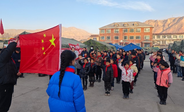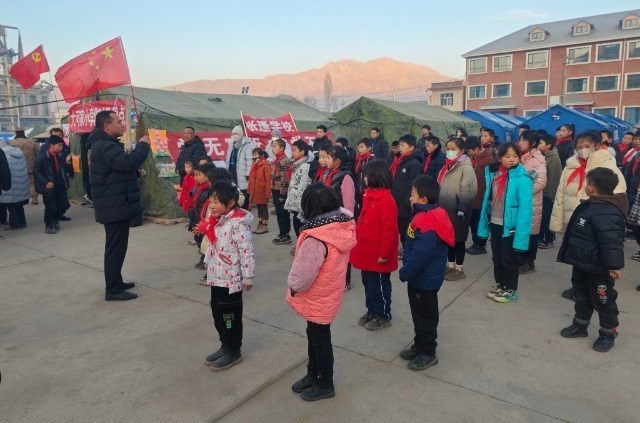 中國教育報-中國教育新聞網訊(特約通訊員 馬綺徽 楊爭榮)12月25日早上8:30,甘肅省積石山縣大河家鎮(zhèn)安置點內的大河家?guī)づ駥W校舉行升旗儀式。