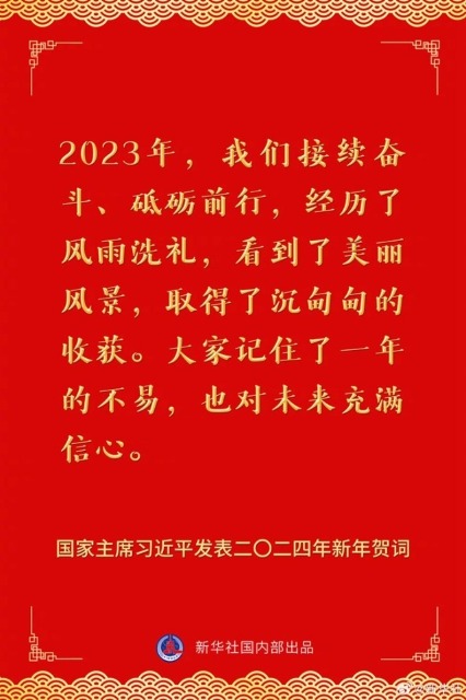 國家主席習近平發(fā)表二〇二四年新年賀詞,一起來看金句。