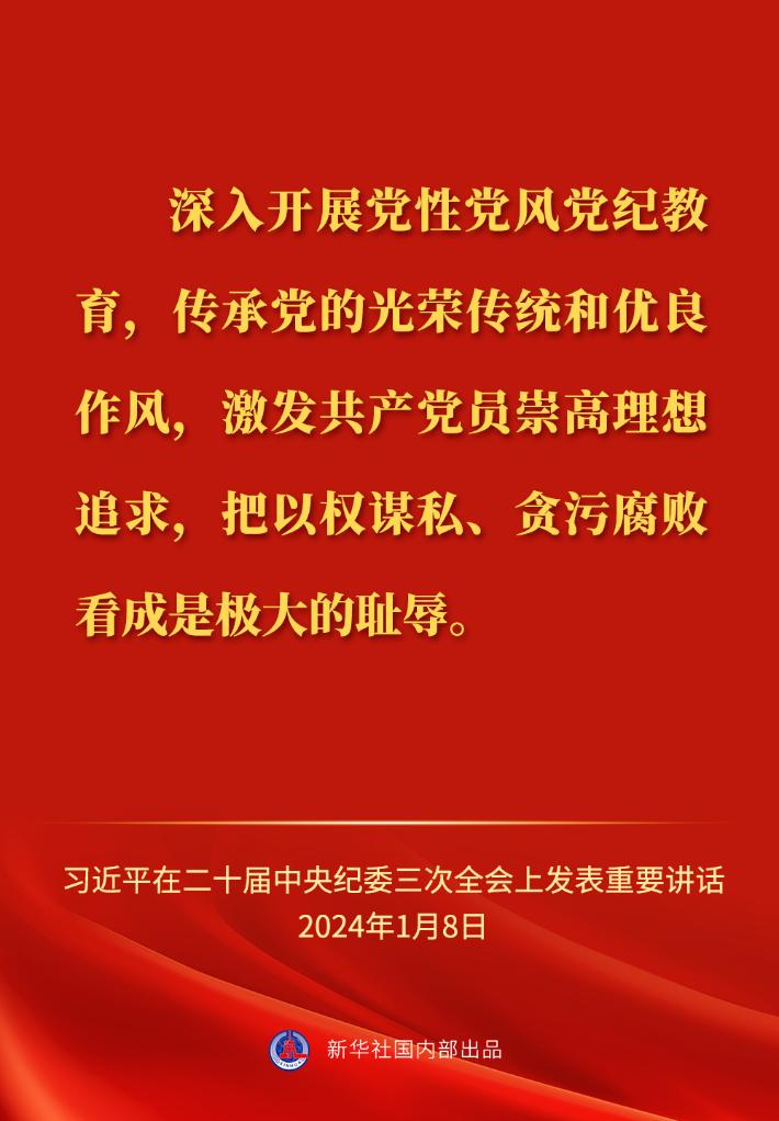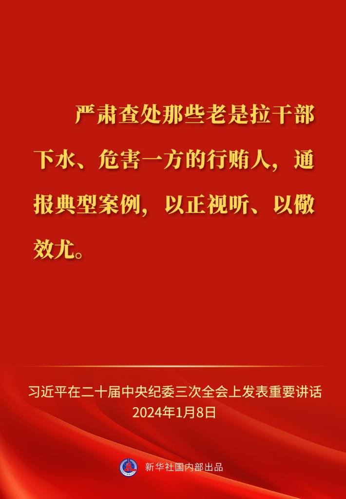 中共中央總書記、國家主席、中央軍委主席習(xí)近平8日上午在中國共產(chǎn)黨第二十屆中央紀(jì)律檢查委員會(huì)第三次全體會(huì)議上發(fā)表重要講話,一起來看金句。