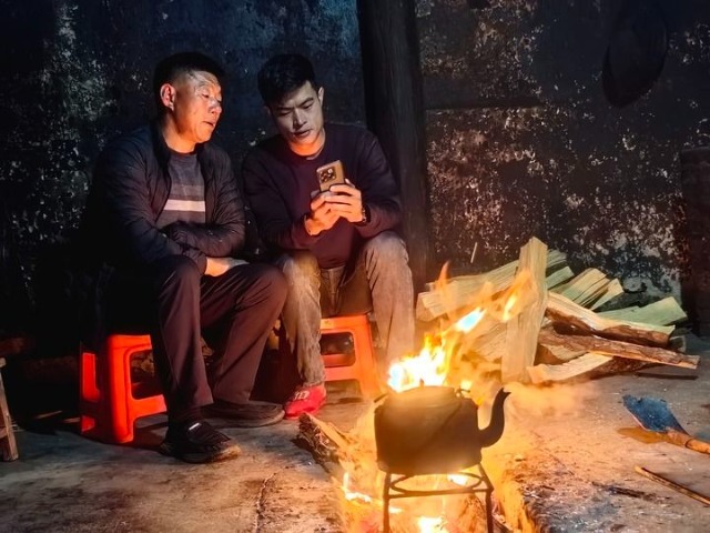 ??2024年2月9日,在云南省南華縣兔街鎮(zhèn)半坡村,彝族小伙阿玉龍與父親圍坐在爐火邊。新華社發(fā)(呂玉玲 攝)