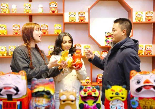 非遺傳承人在給外國留學(xué)生講解“泥叫虎”的制作工藝 張進(jìn)剛 攝