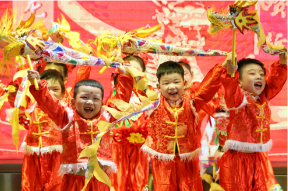 小朋友通過舞龍表演,感受中國傳統(tǒng)民俗文化的魅力。通訊員 周強(qiáng) 攝