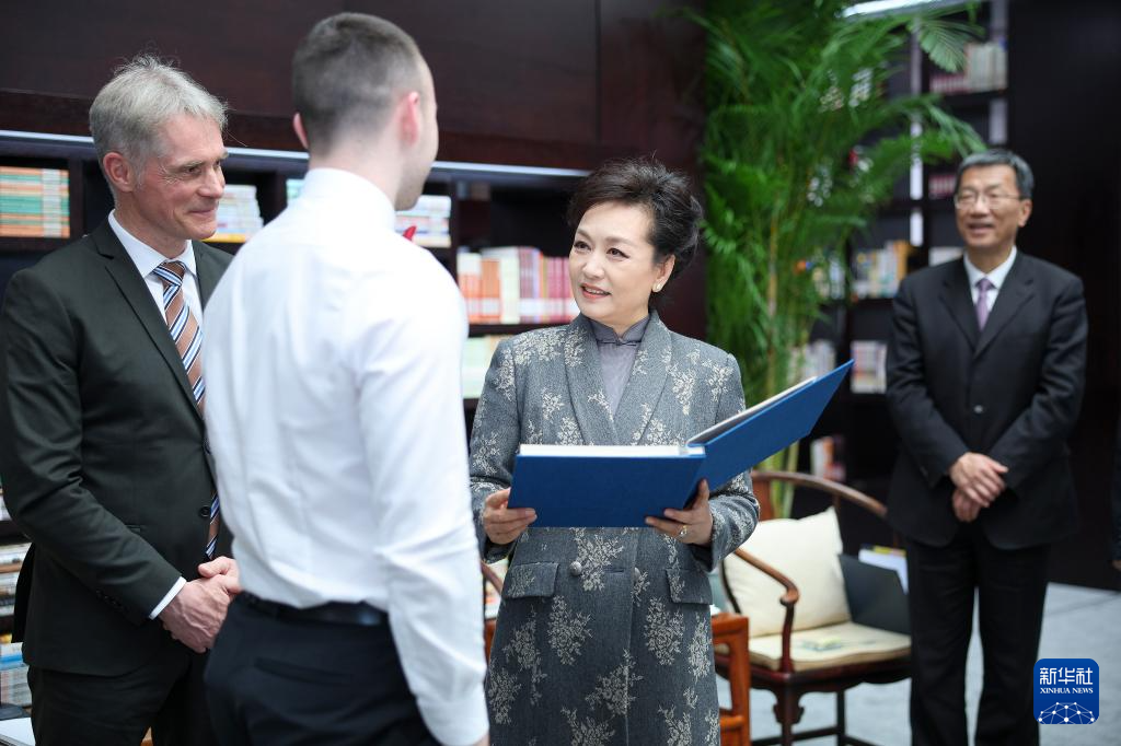 彭麗媛與師生們親切互動(dòng),稱贊同學(xué)們中文說得越來越好,表示相信這次中國(guó)之行將進(jìn)一步加深他們對(duì)中國(guó)的了解,鼓勵(lì)同學(xué)們回國(guó)后向家人和朋友分享在中國(guó)的見聞和感受,繼續(xù)書寫中德友誼佳話。
