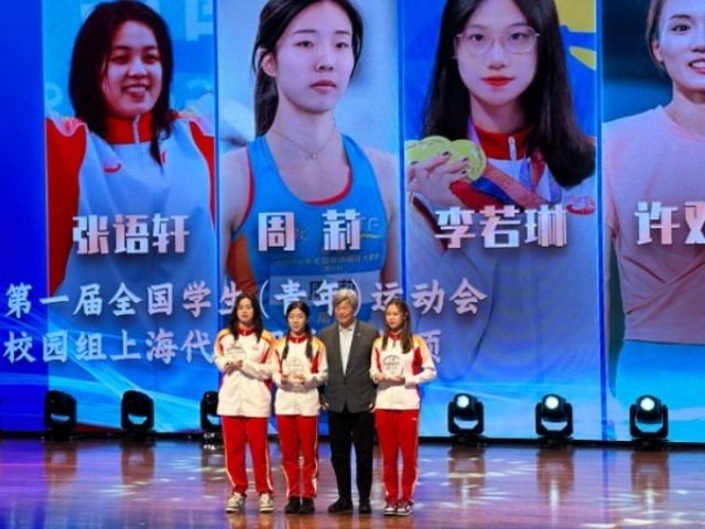 活動現(xiàn)場,為“最佳陽光體育活力校園系列獎項”和“第一屆全國學(xué)生(青年)運動會校園組上海代表團(tuán)系列獎項”頒獎。