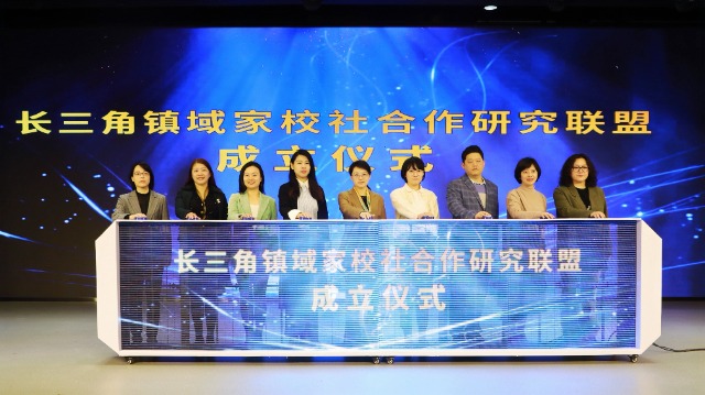 長(zhǎng)三角鎮(zhèn)域家校社合作研究聯(lián)盟成立儀式現(xiàn)場(chǎng)