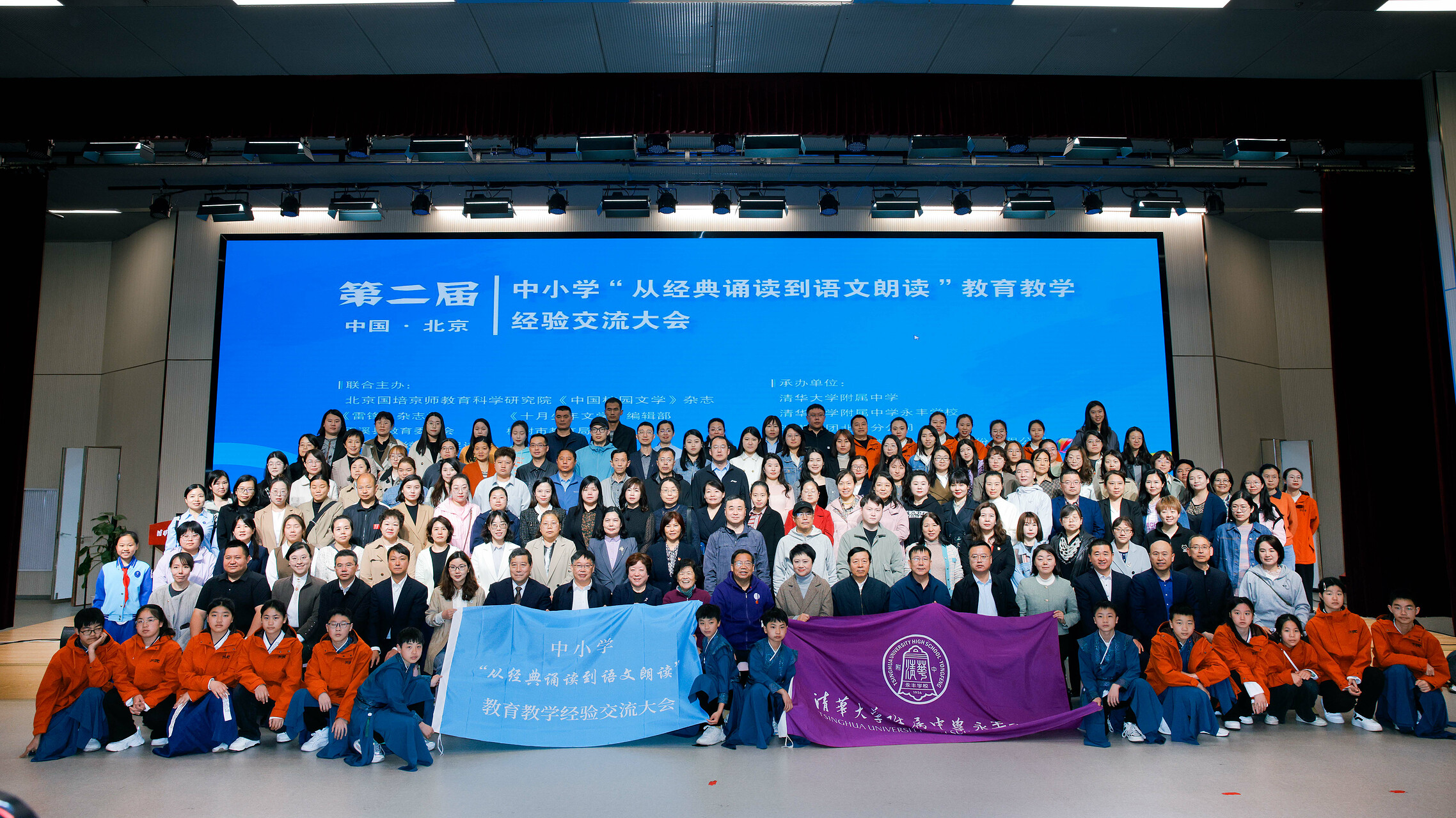 中國(guó)教育新聞網(wǎng)訊(記者 戚悅)重拾校園誦讀朗讀傳統(tǒng),讓閱讀為孩子成長(zhǎng)奠基。4月12日,第二屆中小學(xué)“從經(jīng)典誦讀到語文朗讀”教育教學(xué)經(jīng)驗(yàn)交流大會(huì),在清華大學(xué)附屬中學(xué)永豐學(xué)校成功舉辦。大會(huì)由北京國(guó)培京師教育科學(xué)研究院、《中國(guó)校園文學(xué)》雜志社、《雷鋒》雜志社、《十月少年文學(xué)》雜志社、吉林省榆樹市教育局、重慶市巫溪縣教育委員會(huì)和河北省傳統(tǒng)文化促進(jìn)會(huì)聯(lián)合主辦。來自北京市各區(qū)縣、重慶市巫溪縣、吉林省榆樹市和河北省保定市涿州市等教育局領(lǐng)導(dǎo)、中小學(xué)校長(zhǎng)以及師生800多人現(xiàn)場(chǎng)參加交流。