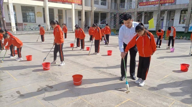 馬莊小學坐落在黃河故道旁,是一所遠離城市的農(nóng)村小學?!暗貢奔拳h(huán)保,又能鍛煉學生身體素質(zhì),還能提高學生的寫字水平。一舉多得,何不在校園推廣?