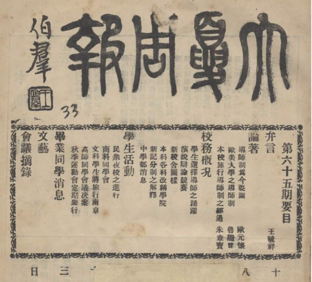 《大夏周報》刊文介紹導(dǎo)師制。學(xué)校供圖