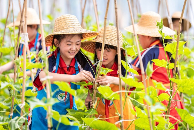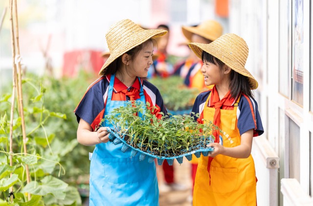近年來,內(nèi)蒙古呼和浩特市玉泉區(qū)百什戶小學(xué)積極開展勞動教育與實踐,開辟了校園“五谷豐登”農(nóng)場,組織學(xué)生參與整地、播種、除草、施肥、采摘、收獲等過程,讓孩子們在豐富課余生活、提高動手能力的同時,從小養(yǎng)成愛勞動的好習(xí)慣,在勞動中收獲快樂與成長。中國教育報-中國教育新聞網(wǎng)通訊員 丁根厚 攝