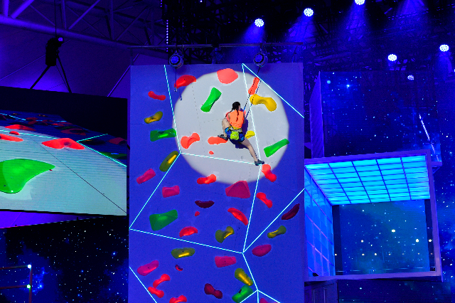 在時裝劇第四幕“天人合一”中,東華大學攀巖隊教練張輝和他的愛人、世界攀巖冠軍李春華,以及“小小攀巖手”女兒化身主人公,在視頻短片中娓娓講述不斷攀登、永遠向上的故事。張輝是東華大學攀巖隊主教練,不僅帶出了40多名全國大學生攀巖比賽冠軍,他還一直推廣攀巖運動,培養(yǎng)了5000余名攀巖愛好者。