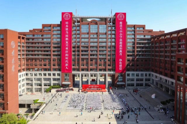 當(dāng)天,以“傳承紅色基因、浸潤(rùn)善美心靈”為主題的大中小學(xué)思想政治教育一體化建設(shè)美育成果展演在明德堂上演,以“七彩少年·紅色傳承·時(shí)代創(chuàng)新”為主題的AI賦能創(chuàng)意書畫展在明德廣場(chǎng)展出。