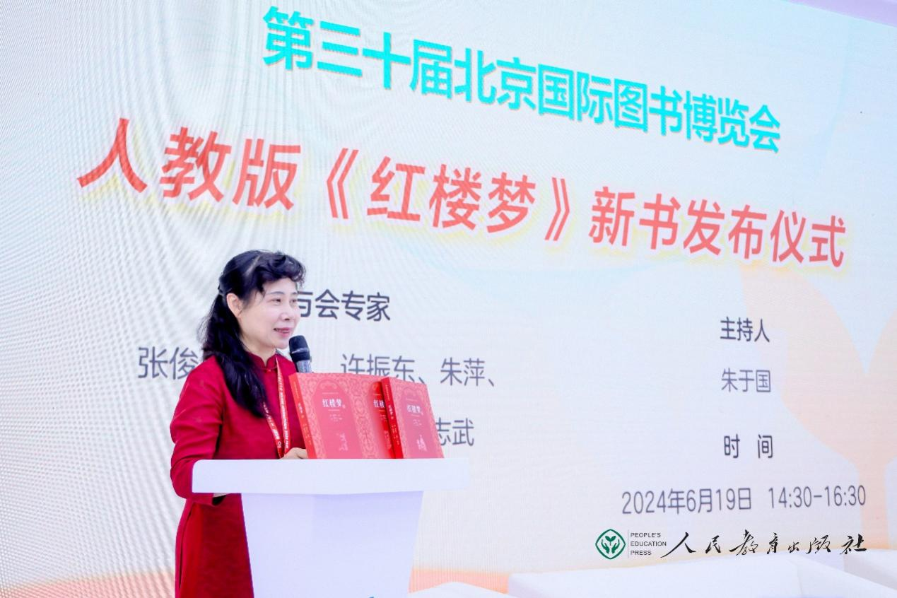 人民教育出版社總編輯王日春介紹了人教社“名著閱讀課程化叢書”的編寫初衷和人教版《紅樓夢》出版的基本情況。他表示,人教社在編研出版基礎(chǔ)教育教材的同時,非常重視推動全民閱讀,設(shè)計并推出的“名著閱讀課程化叢書”,通過系統(tǒng)化的課程設(shè)計,幫助讀者尤其是中小學(xué)生更好地理解和欣賞名著的精髓,深受讀者歡迎。本次發(fā)布的人教版《紅樓夢》就是該套叢書的最新產(chǎn)品?!都t樓夢》是中國古代文學(xué)中的經(jīng)典巨著,具有深厚的思想文化內(nèi)涵、高超的藝術(shù)手法,是中華民族共同的文化記憶和寶貴的精神財富,是文化傳承與文化創(chuàng)新的寶貴資源。出版專為中小學(xué)生量身打造的人教版《紅樓夢》,對幫助中小學(xué)生傳承和理解中華優(yōu)秀傳統(tǒng)文化,培養(yǎng)文化自信能起到重要的推動作用。
