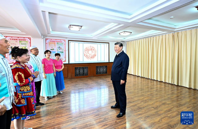 6月19日至20日,中共中央總書記、國家主席、中央軍委主席習(xí)近平在寧夏考察。這是19日下午,習(xí)近平在銀川市金鳳區(qū)長城花園社區(qū)活動室考察時,同社區(qū)居民親切交流。新華社記者 燕雁 攝