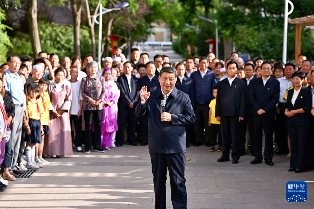 6月19日至20日,中共中央總書記、國家主席、中央軍委主席習(xí)近平在寧夏考察。這是19日下午,習(xí)近平在銀川市金鳳區(qū)長城花園社區(qū)考察時,同社區(qū)居民親切交流。新華社記者 燕雁 攝