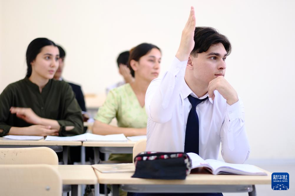 6月12日,在塔吉克斯坦首都杜尚別,學(xué)生在塔吉克斯坦民族大學(xué)孔子學(xué)院課堂聽課。新華社記者 鄭開君 攝