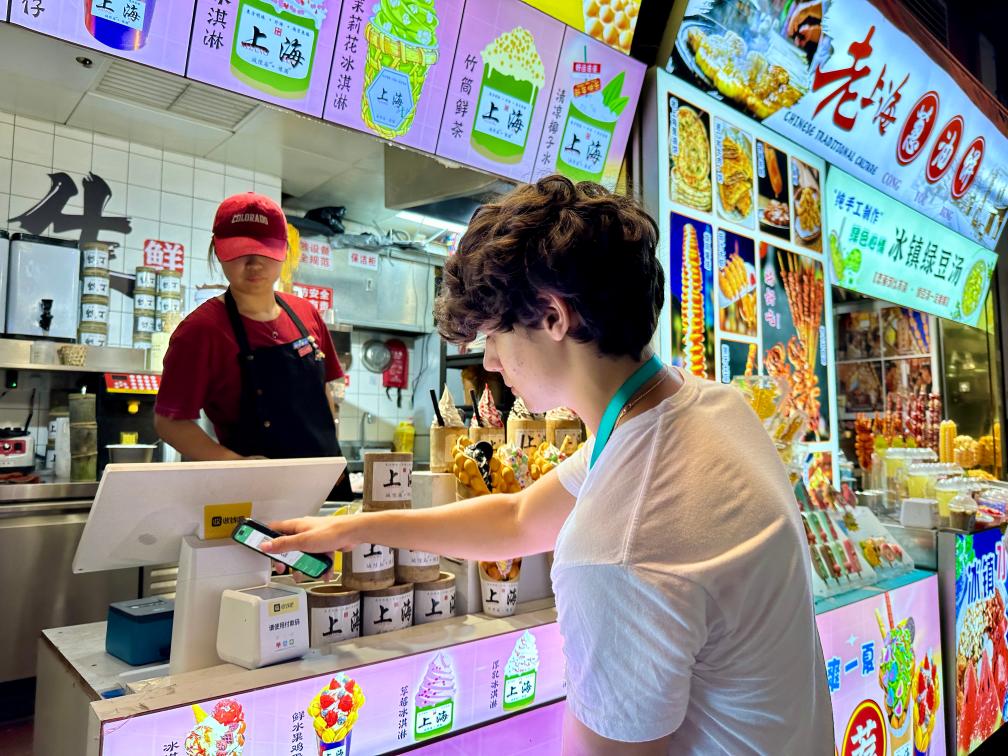 7月10日,美國青少年在上海逛夜市。新華社記者 袁睿 攝