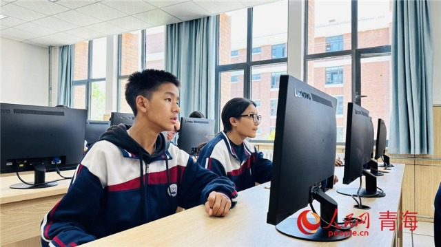 果洛西寧民族中學(xué)的學(xué)生在計算機教室上課。人民網(wǎng) 況玉 攝