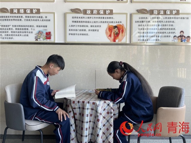 果洛西寧民族中學(xué)讀書角。人民網(wǎng) 況玉 攝