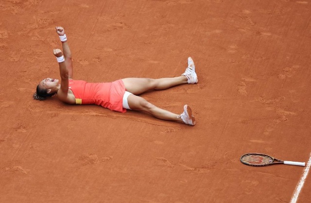 8月3日,鄭欽文在巴黎奧運(yùn)會(huì)網(wǎng)球女子單打金牌賽后慶祝奪冠。新華社記者 高靜 攝